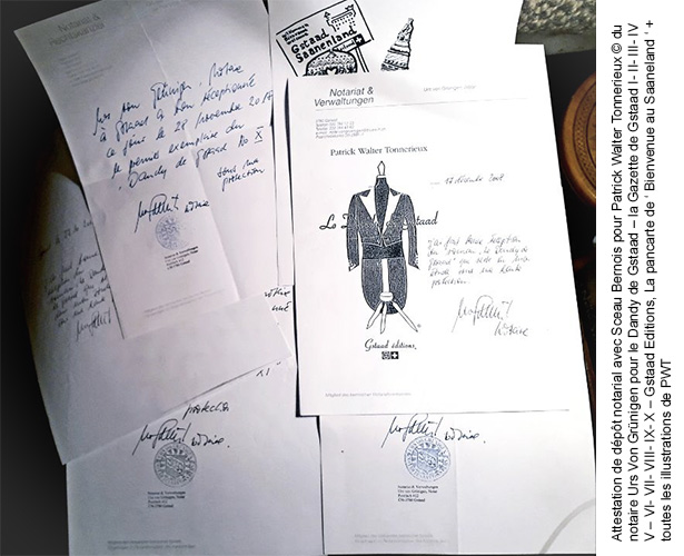 Un notaire est tenu d'informer son client sur les conséquences de ses écrits juridiques, en l'occurence avec le Sceau Bernois, tout comme la Mairie avec le Tampon Communal. Le notaire protégeant son client par ses écrits a l'obligation d'assister spécialement son client qui se trouverait en situation difficile. Il doit respecter son client, l'informer et ne doit pas tirer profit de son client. Dans ce cas précis, ces écrits portant le Sceau Bernois sur toutes les créations de Patrick Walter Tonnerieux sont authentifiées et sécurisées et protégées par le Sceau Bernois comme l'exige la loi. Le notaire doit être loyal et de bonne foi, puisqu'il s'est engagé par écrit à protéger les livres, illustrations, interviews, 'Pancarte de Bienvenue au Saanenland' de Patrick Walter Tonnerieux. Il doit prendre part à ce conflit puisqu'il savait tout du début. Il doit porter son témoignage en public et qu'importe le changement de vie de ce dernier. Ses écrits restent et sont des preuves qui s'appliquent aussi bien pour les Romans qui sont plagiés à Paris.