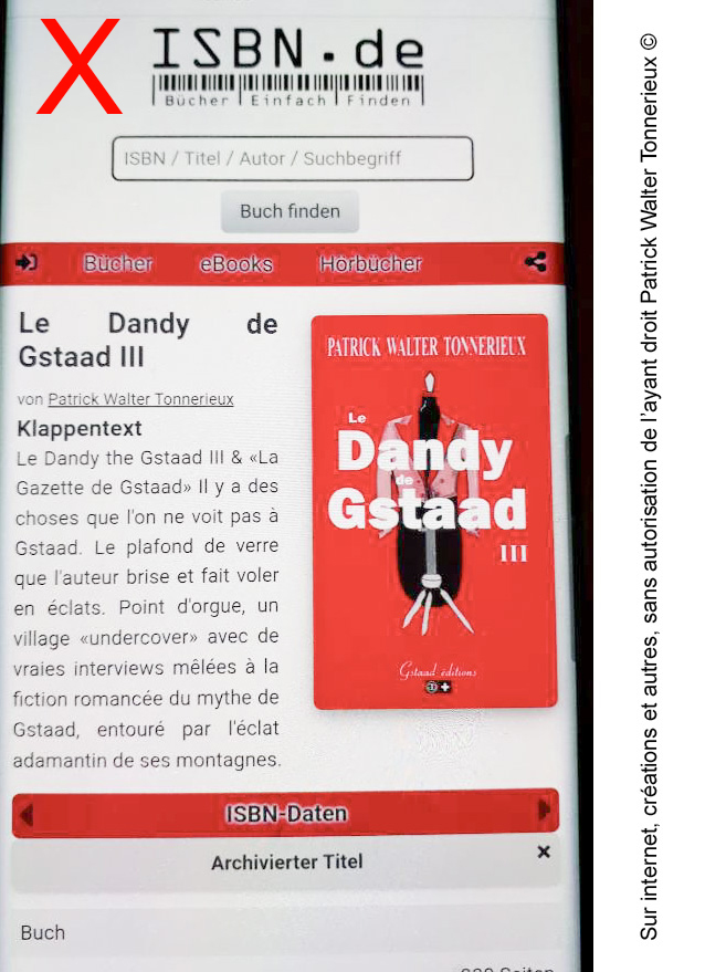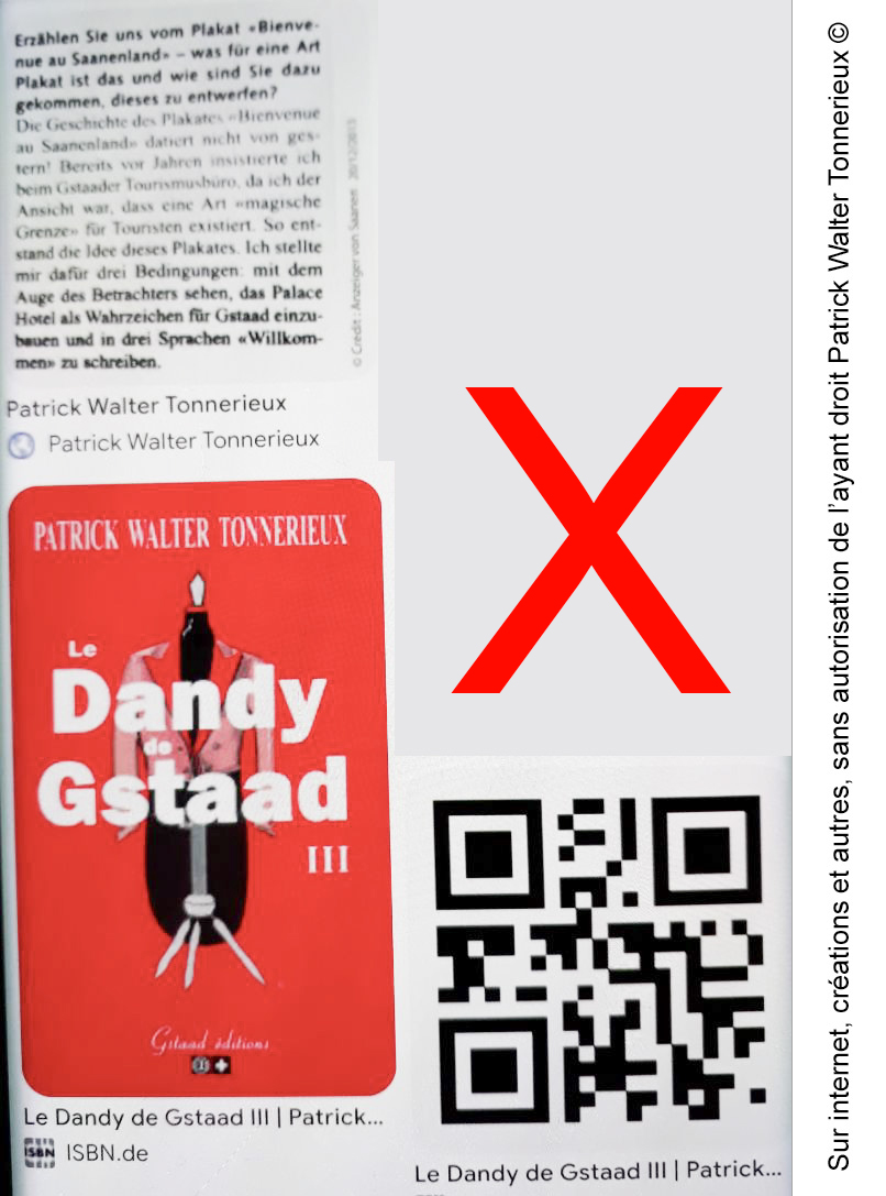 _On va jusqu’à plagier, vos lieux et vos histoires au chalet et pourtant, tous figurent dans ‘Le Dandy de Gstaad’ n°1 de 2008 ! Dans ce contexte de violation de droit d’auteur, n’oublions-pas, que le droit d’auteur est à vie et se paie…