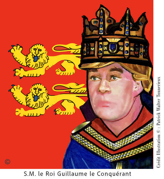 Dans ‘La Gazette de Gstaad’, c’est -Guillaume le Conquérant- qui est à l’honneur, celui qui fut -Duc de Normandie- et -Roi d’Angleterre-. Voilà pourquoi règne dans la langue anglaise plus de la moitié de mots et expressions en français. Sans parler des traces normandes ultra profondes dans la société anglaise. Le Roi fit construire la Tour de Londres bâtie en pierres de Caen (Normandie). Il réorganise l’armée, la justice, le parlement, d’où la devise Anglo-Normande ’Honi soit qui mal y pense’.